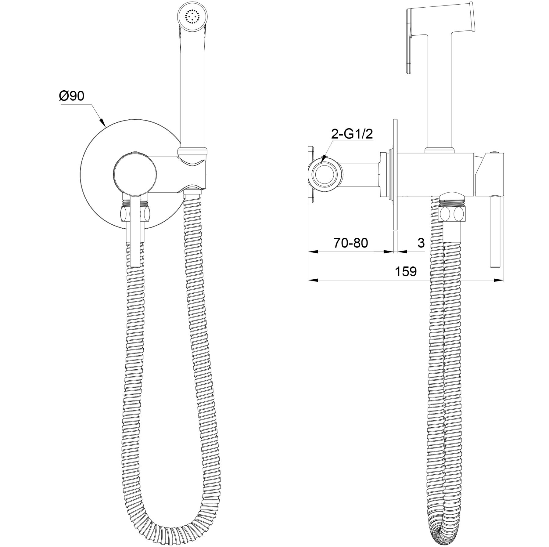 Гигиенический душ со смесителем Wonzon & Woghand Stick WW-88829902-MB чёрный матовый