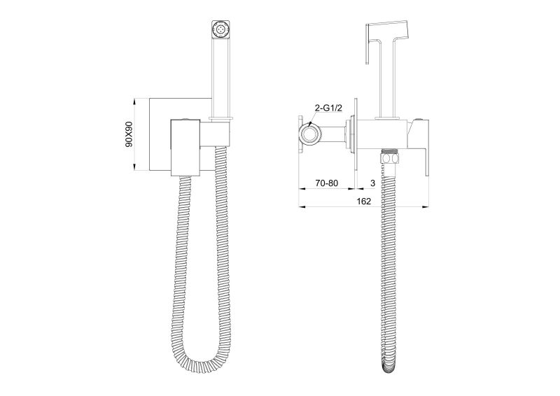 Смеситель с гигиеническим душем встраиваемый WONZON & WOGHAND, Хром (WW-88829903-CR)