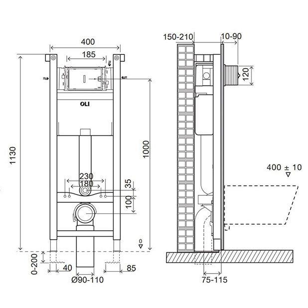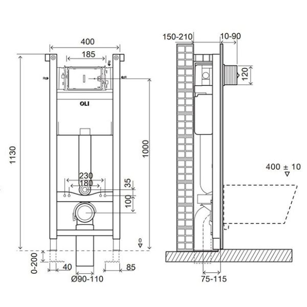 Характеристики: совместима со всеми видами подвесных унитазов; подходит для легких и несущих стен; рама испытана нагрузкой 400 кг; легкость и быстрота установки (система Fast Fit); доступна опция с металлическими креплениями; регулируется по высоте от 0 до 200 мм. фановый отвод для слива, регулируемый по глубине.
