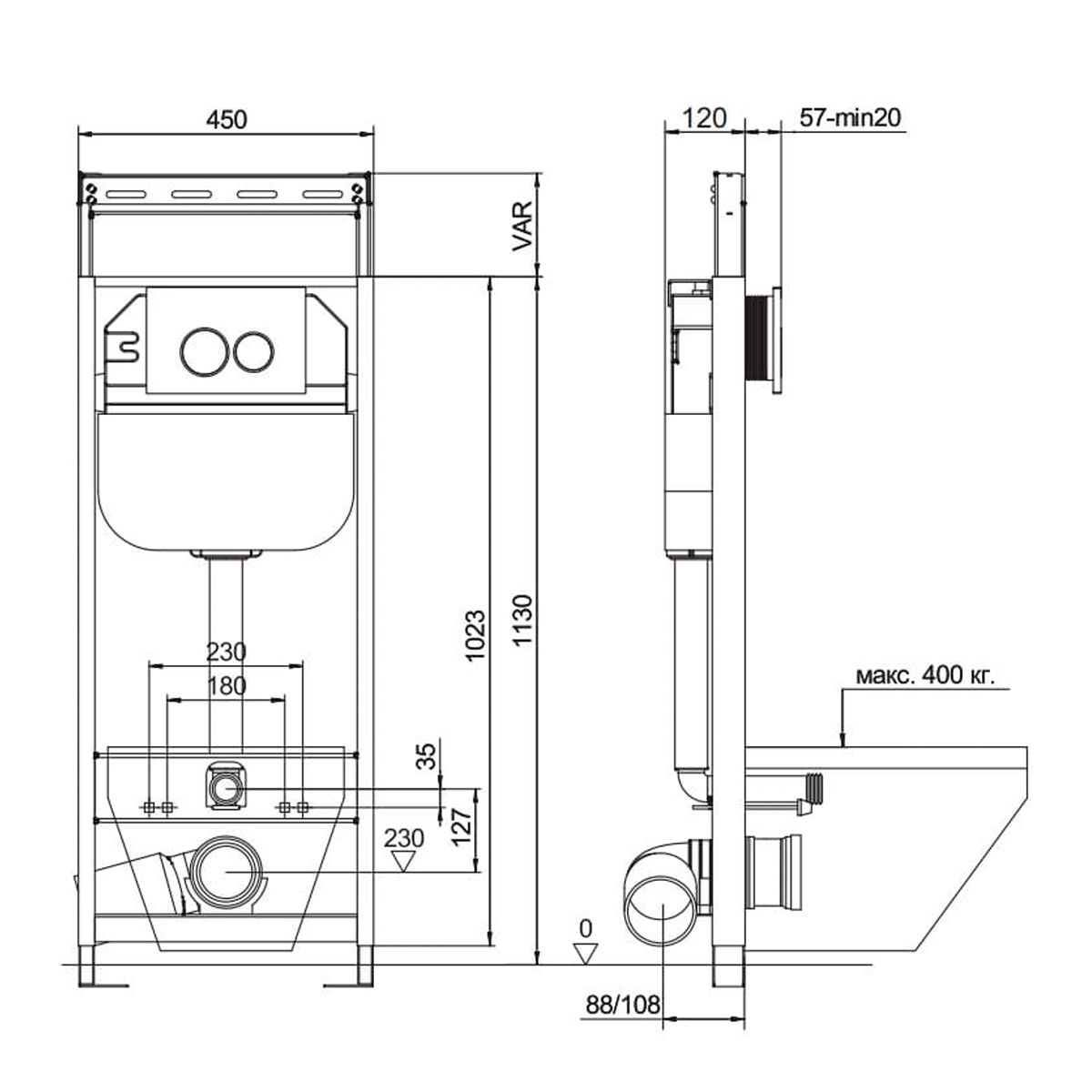 Комплектация «готовый комплект»- все необходимые крепления, патрубки, звукоизолирующая прокладка в комплекте. Вертикальные ребра жесткости в конструкции рамы – дополнительная опора в месте давления керамики на стену. Благодаря им инсталляция становится универсальной и подходит для унитазов любых размеров, включая унитазы с небольшой контактной поверхностью. Нет необходимости докупать дополнительные аксессуары для монтажа таких унитазов. Конструкция из цельного стального профиля 50*25 мм толщиной 2,0 мм позволяет выдерживать требуемую стандартами нагрузку до 400 кг. Цельно-выдувной бесшовный бачок из полиэтилена низкого давления (ПНД) с защитой от конденсата. Комфортное использование благодаря заливному клапану с низким уровнем шума – менее 20 Дб. Металлические детали конструкции инсталляции Aquanika покрыты порошковой эмалью для предотвращения появления коррозии. В сочетании приведённых характеристик мы предоставляем гарантию на данный продукт 10лет.