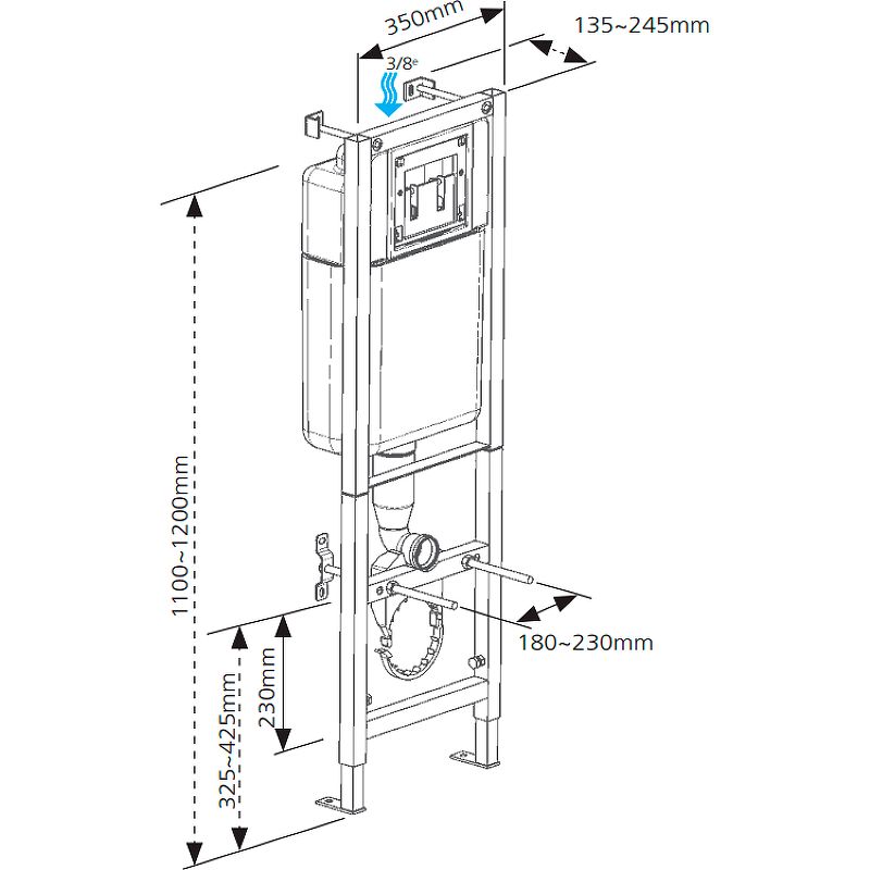 Инсталляция Cersanit Black 35 S-IN-BLACK-Cg-w для унитаза с клавишей смыва Хром.Характеристики:Инсталляция:Размеры (ШхВхГ): 350х1200х245 мм.