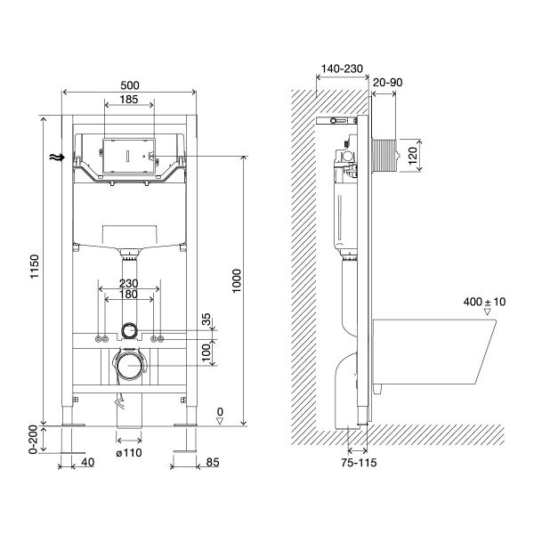 • Монтажные размеры (ШхГхВ): 500мм х 140-230мм х 1150-1290мм