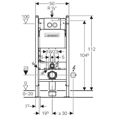 Монтажный элемент Geberit Duofix для подвесного унитаза, 112 см, со смывным бачком скрытого монтажа Delta 12 см, смывная клавиша Delta21Объем поставки: