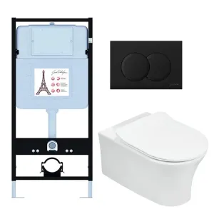 Инсталляция Jacob Delafon E21731RU-BL, с безободковым унитазом Aleo, сиденье с микролифтом, клавиша черная матовая