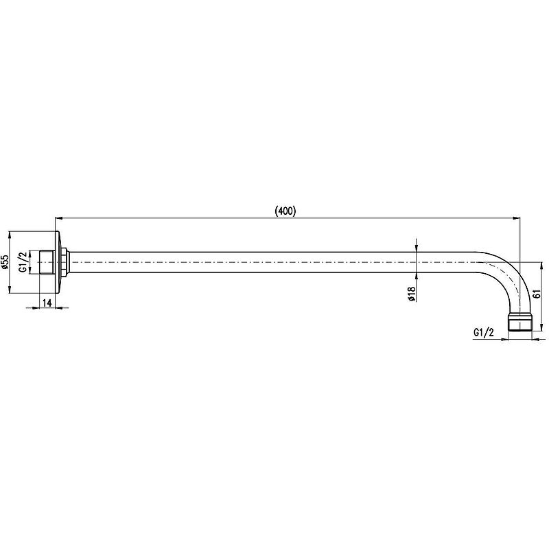 MD0150CMAT Излив для головного душа, длина 40 см, металл, ЧЕРНЫЙ МАТОВЫЙ