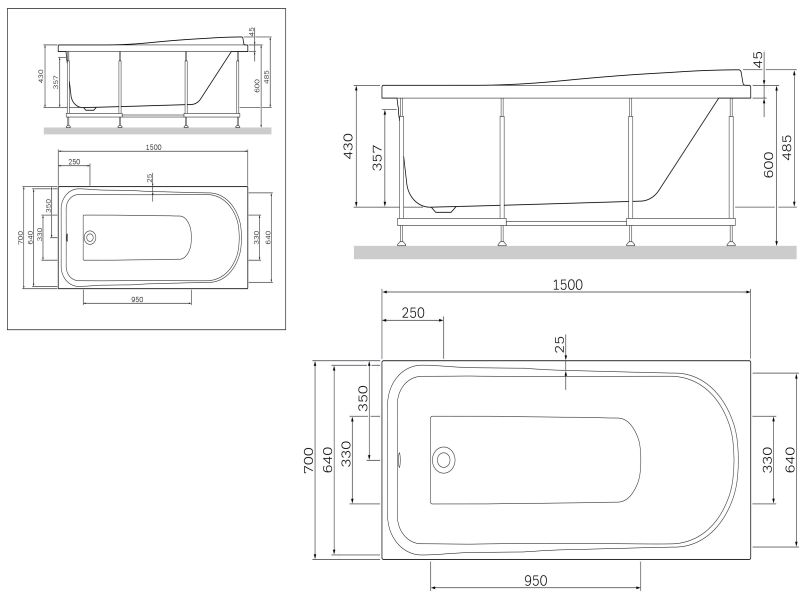 W80A-150-070W-R Like, каркас для ванны A0 150х70 см