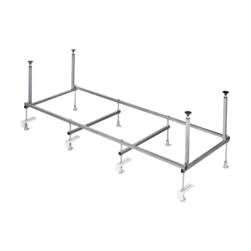 В состав монтажного комплекта входит каркас, слив-перелив, крепления ванны к стене и крепления фронтальной панели. Для изготовления каркаса для акриловой ванны SANTEK используется профиль из оцинкованной стали. Данный профиль не требует окрашивания, оцинкованная сталь не подвергается коррозии. Каркас на 8 опорах с регулируемыми по высоте. Крепления ванны к стене надежно фиксируют ванну в одном положении.