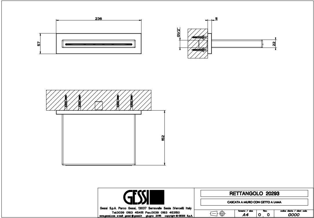 Излив Gessi Cascata, каскадный, настенный, для смесителя удалённого управления, с размерами 236х... Подробнее