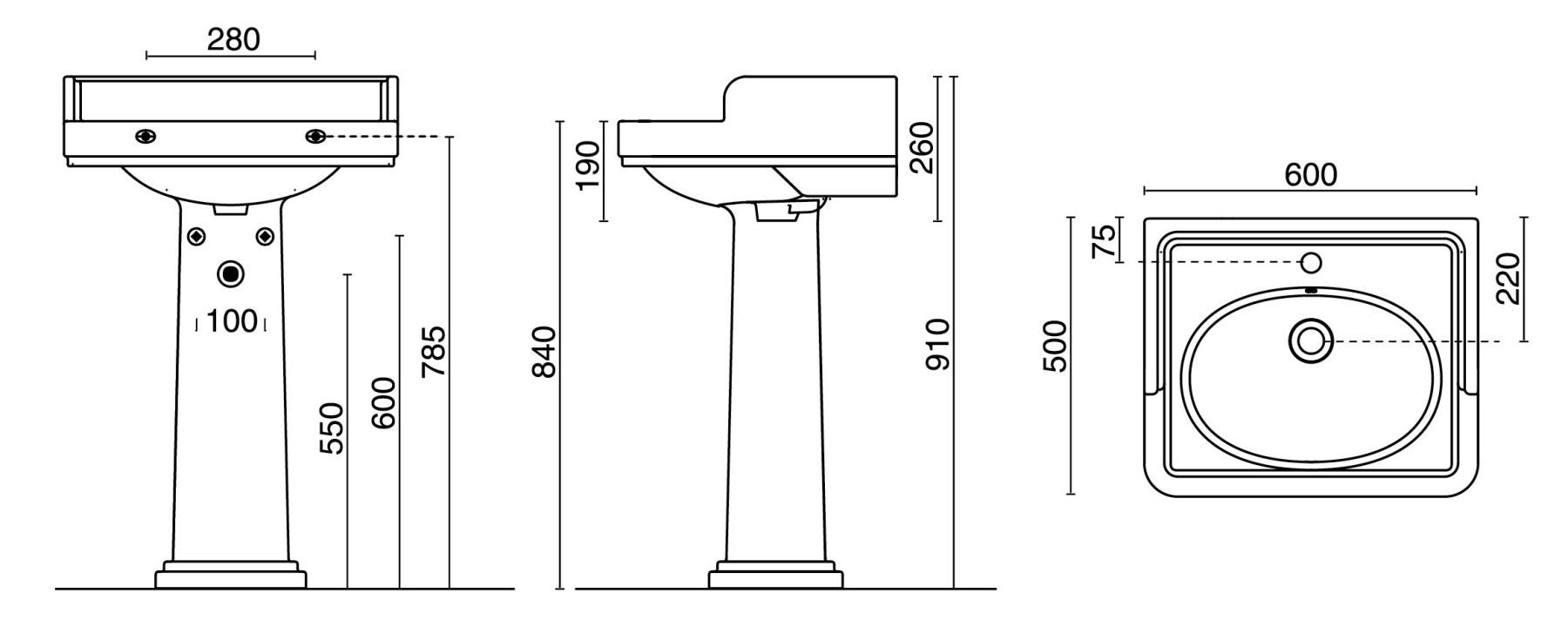 • Отверстия под смеситель: