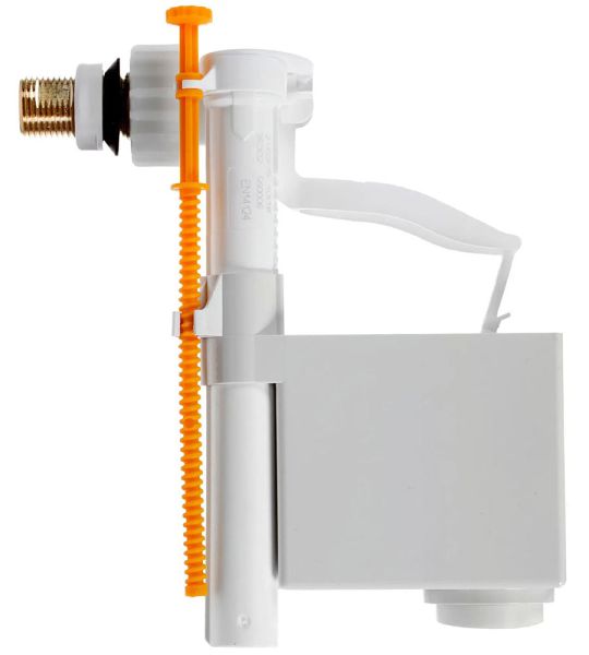 Наливной клапан для унитаза с боковым подводом воды. Латунный штуцер G1/2", поршневая (механическая) система запирания, рабочее давление 0.5 - 10 бар, функция защиты от противотока. Сертифицирован на соответствие стандартам NF, KIWA и DIN.