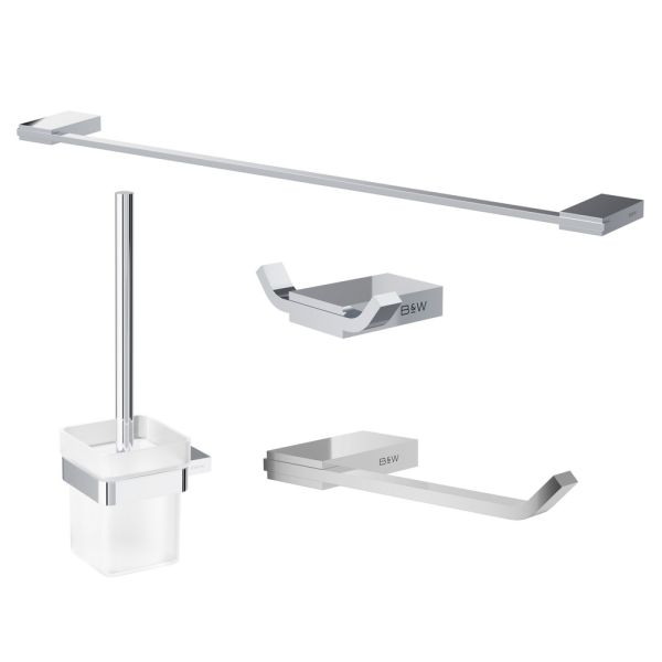 Комплект аксессуаров для ванной комнаты Black and White 7720C хромДля тех, кто любит четкие четкость, структурированность и правильную геометрию. Прямые углы и незатейливые изгибы, чтобы было стильно и изысканно. Вечная классика с элементами новейших тенденций. Коллекция выполнена из надежных материалов: латунь и закаленное стекло, именно это позволяет не беспокоиться о надежности и увеличенном сроке службы каждого изделия. Соберите полную коллекцию из двух наборов, чтобы не думать о том, чего же еще не хватает.