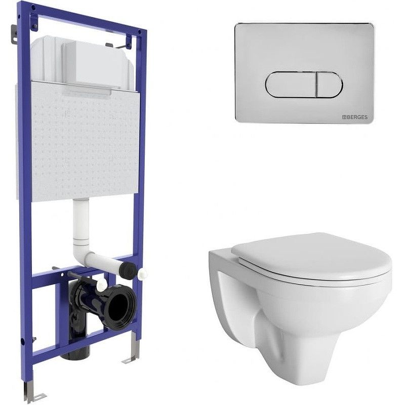 Комплект Berges 4в1 042417: инсталляция NOVUM525 кнопка D3 хром глянец унитаз Gamma сиденье микролифт