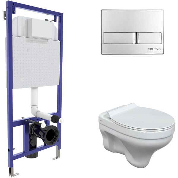 Комплект Berges 4в1 042438: инсталляция NOVUM кнопка L3 хром глянец унитаз Albit S сиденье Top Slim SO