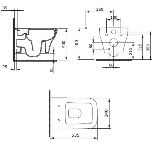 Толщина бачка 80 мм.