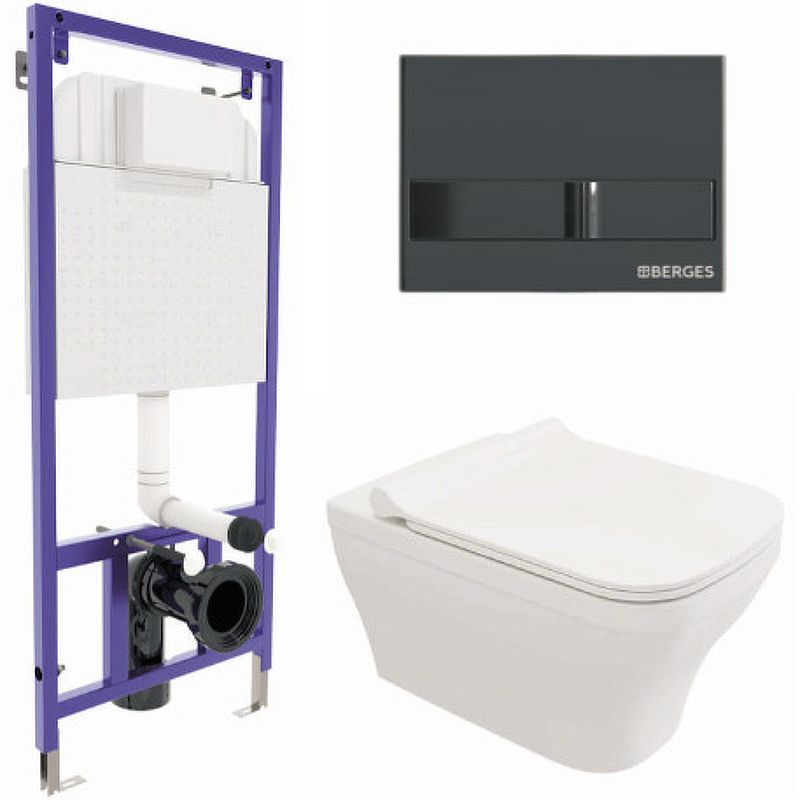 Комплект Berges 4в1 042454: инсталляция NOVUM кнопка L6 чёрный глянец унитаз Strati Rimless сиденье Strati Slim SO купить