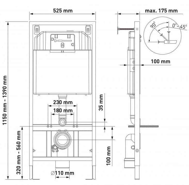 Полный комплект BERGES для монтажа подвесного унитаза. 1. Инсталляция NOVUM525Толщина бачка 80 мм.Межосевое расстояние под крепежные шпильки унитаза 18 и 23 см.Резервуар воды объемом 10 литров с тепло-шумоизоляцией.Уровень шума при давлении 3 бар не превышает 13 дБ.Подвод воды сверху (G1/2 наружная).Объем смыва 3/6 литра с возможностью регулировки. Металлический каркас, окрашенный антикоррозийной эмалью, расчетная нагрузка до 400 кг.Ножки регулировки высоты из оцинкованной стали. Возможность установки в угол. 2. кнопка D7 белая/хром глянецABS-пластик 3. унитаз MASCON Rimless,безободковая система смыва, антибактериальное покрытиеэкономия воды, скрытый крепеж 4. сиденье дюропласт Toma Slim SOмикролифт, быстросъем Все крепежи для установки в комплекте