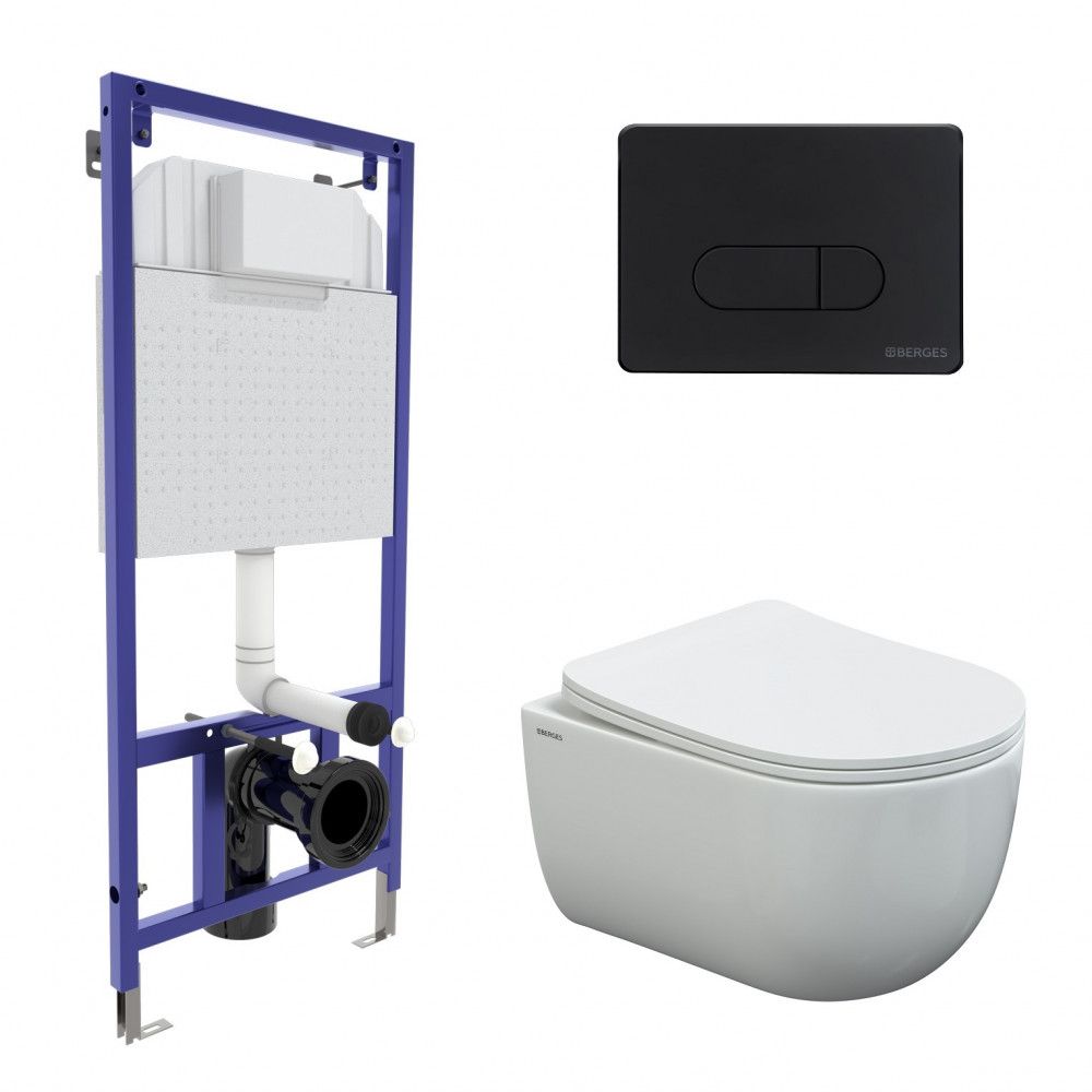 Комплект Berges 4в1 043238: инсталляция NOVUM 525 D5 черная Soft Touch унитаз VENTAS Rimless сидение дюропласт Ventas Slim SO