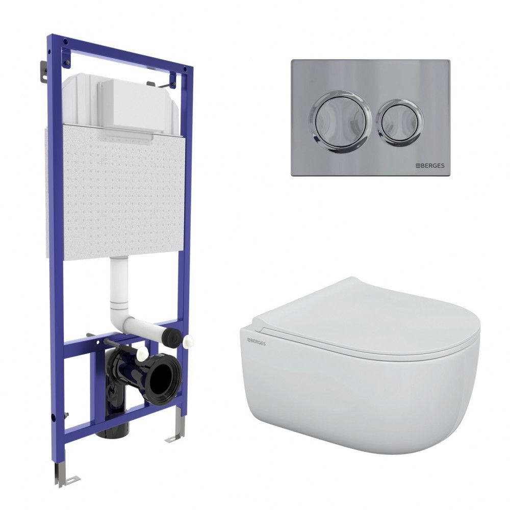 Комплект Berges 4в1 043249: инсталляция NOVUM 525 кнопка O3 хром глянец унитаз EGO Rimless сидение Okus Slim SO купить