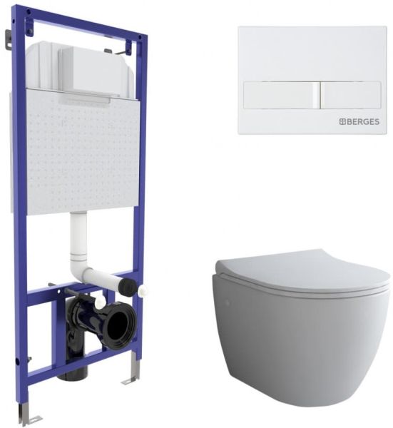Комплект Berges 4в1 043263: инсталляция NOVUM525 кнопка L1 белая унитаз Okus сиденье Toma Slim SO