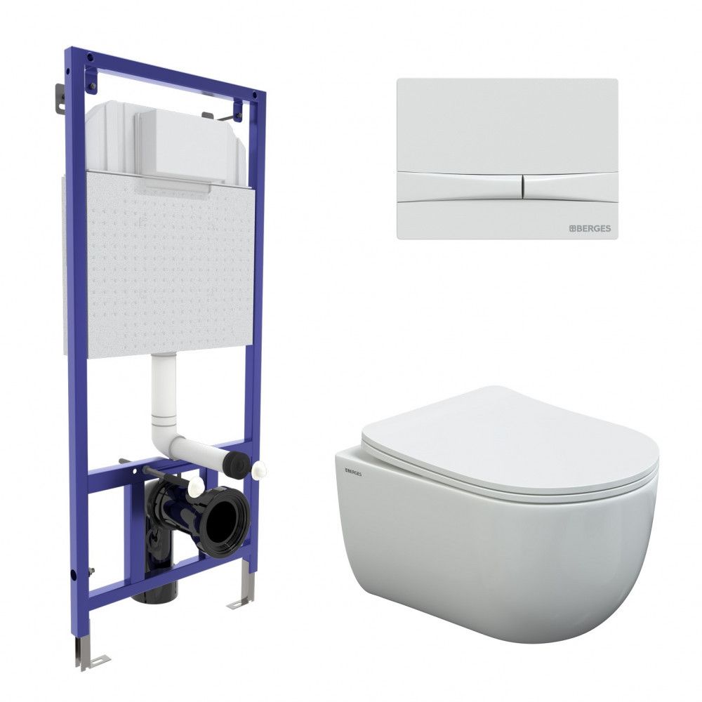 Комплект Berges 4в1 043310: инсталляция NOVUM 525 кнопка F1 белая унитаз VENTAS Rimless сидение дюропласт Ventas Slim SO купить