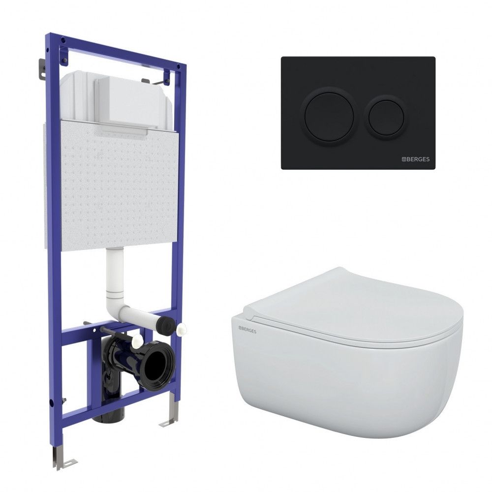 Комплект Berges 4в1 043311: инсталляция NOVUM 525 кнопка O5 черная Soft Touch унитаз EGO Rimless сидение Okus Slim SO