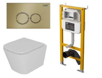 Комплект Унитаз подвесной  безободковый DQ Berlin DT1436016+Инсталляция рамная скрытого монтажа DQ DI8050127, 500*117*1270мм, для подвесного унитаза+Клавиша смыва DQ Bayern DB1529007, матовое золото