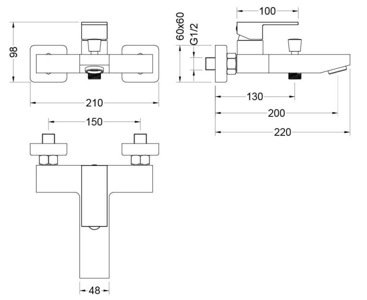 Комплект для ванны Aquatek Либра AQ1630MB чёрный матовый