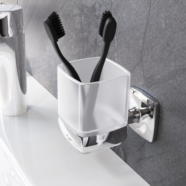 Стеклянный стакан для зубных щеток - цвет: белый хром.