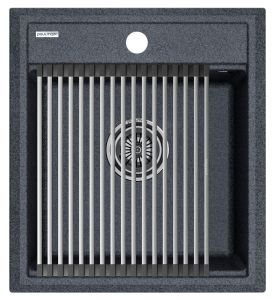 Комплект мойка STEPIA 45 + ролл-мат STEP, PM114651-DG+R375-BSСтильный и многофункциональный комплект мойки из композитного материала на основе гранита и ролл-мата из высококачественной нержавеющей стали для создания комфортной рабочей зоны на вашей кухне.Мойка STEPIA 45 изготовлена из IT-GRANIT – композитного материала на основе гранита, благодаря чему мойка не потеряет свой первоначальный цвет за многие годы использования даже при длительном воздействии солнечных лучей. Материал мойки устойчив к сколам, царапинам и деформациям. На горизонтальных гранях чаши мойки предусмотрены специальные выступы-ступеньки, которые позволяют использовать такие аксессуары, как ролл-маты, доски, коландеры и пр. для создания дополнительной рабочей поверхности на кухне. Дно чаши мойки имеет 4 грани, направленных к сливу под индивидуальным градусом для максимально быстрого ухода воды.
