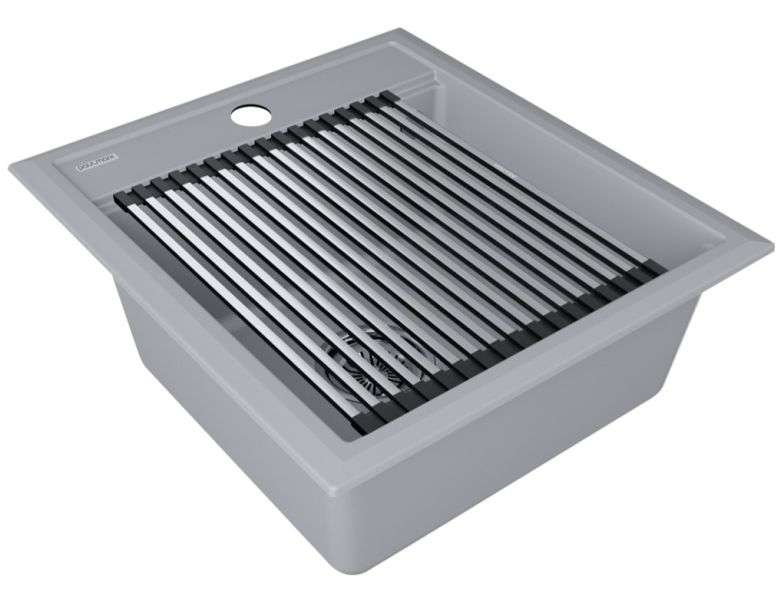 Комплект мойка STEPIA 45 + ролл-мат STEP, PM114651-GRS+R375-BSСтильный и многофункциональный комплект мойки из композитного материала на основе гранита и ролл-мата из высококачественной нержавеющей стали для создания комфортной рабочей зоны на вашей кухне.Мойка STEPIA 45 изготовлена из IT-GRANIT – композитного материала на основе гранита, благодаря чему мойка не потеряет свой первоначальный цвет за многие годы использования даже при длительном воздействии солнечных лучей. Материал мойки устойчив к сколам, царапинам и деформациям. На горизонтальных гранях чаши мойки предусмотрены специальные выступы-ступеньки, которые позволяют использовать такие аксессуары, как ролл-маты, доски, коландеры и пр. для создания дополнительной рабочей поверхности на кухне. Дно чаши мойки имеет 4 грани, направленных к сливу под индивидуальным градусом для максимально быстрого ухода воды.