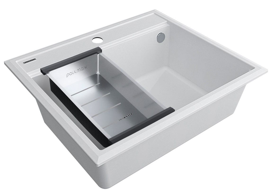 Комплект Paulmark: мойка Stepia 60 и коландер Advance PM115951-WH+A375-BS белый/брашированная нержавеющая сталь купить