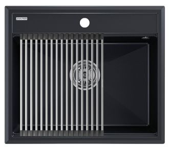 Комплект мойка STEPIA 60 + ролл-мат STEP, PM115951-BLM+R375-BSСтильный и многофункциональный комплект мойки из композитного материала на основе гранита и ролл-мата из высококачественной нержавеющей стали для создания комфортной рабочей зоны на вашей кухне.Мойка STEPIA 60 изготовлена из IT-GRANIT – композитного материала на основе гранита, благодаря чему мойка не потеряет свой первоначальный цвет за многие годы использования даже при длительном воздействии солнечных лучей. Материал мойки устойчив к сколам, царапинам и деформациям. На горизонтальных гранях чаши мойки предусмотрены специальные выступы-ступеньки, которые позволяют использовать такие аксессуары, как ролл-маты, доски, коландеры и пр. для создания дополнительной рабочей поверхности на кухне. Дно чаши мойки имеет 4 грани, направленных к сливу под индивидуальным градусом для максимально быстрого ухода воды.