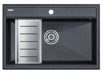 Комплект мойка STEPIA 80 + коландер ADVANCE, PM117551-DG+A375-BSСтильный и многофункциональный комплект мойки из композитного материала на основе гранита и коландера из высококачественной нержавеющей стали для создания комфортной рабочей зоны на вашей кухне.Мойка STEPIA 80 изготовлена из IT-GRANIT – композитного материала на основе гранита, благодаря чему мойка не потеряет свой первоначальный цвет за многие годы использования даже при длительном воздействии солнечных лучей.