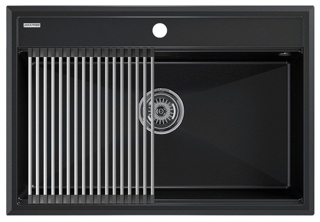 Комплект Paulmark: мойка Stepia 80 и ролл-мат Step PM117551-BLM+R375-BS чёрный металлик/брашированная нержавеющая сталь купить