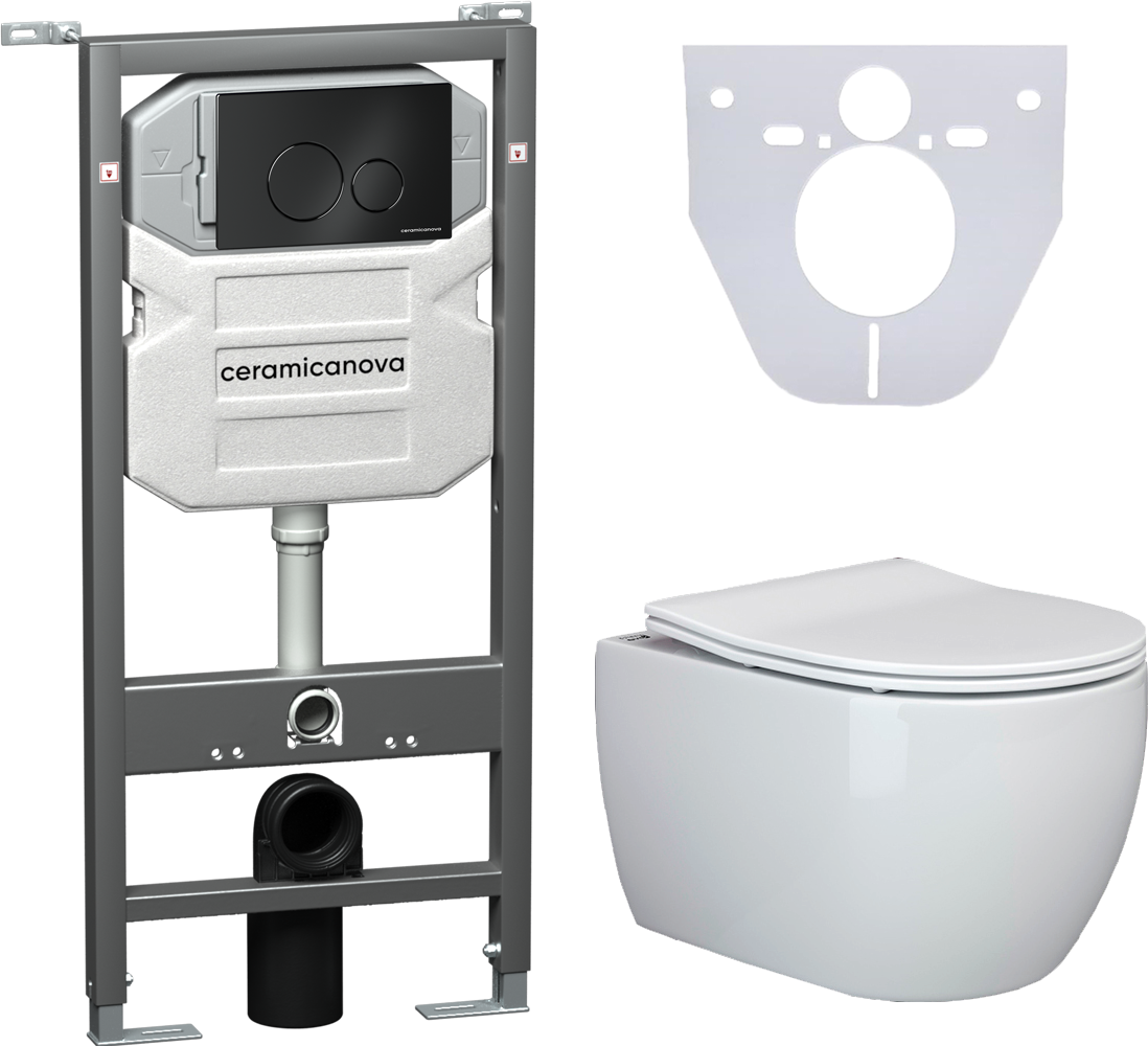 Комплект с инсталляцией Ceramica Nova CN3001_1001B_1000 унитаз Play CN3001 крышка-сиденье с микролифтом и инсталляция Envision CN1001B с чёрной матовой кнопкой смыва Round купить