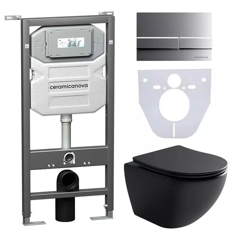 Комплект с инсталляцией Ceramica Nova CN4002MB_1002M_1000 унитаз Metropol CN4002MB крышка-сиденье с микролифтом и инсталляция Envision CN1002M с кнопкой смыва хром матовый Flat купить