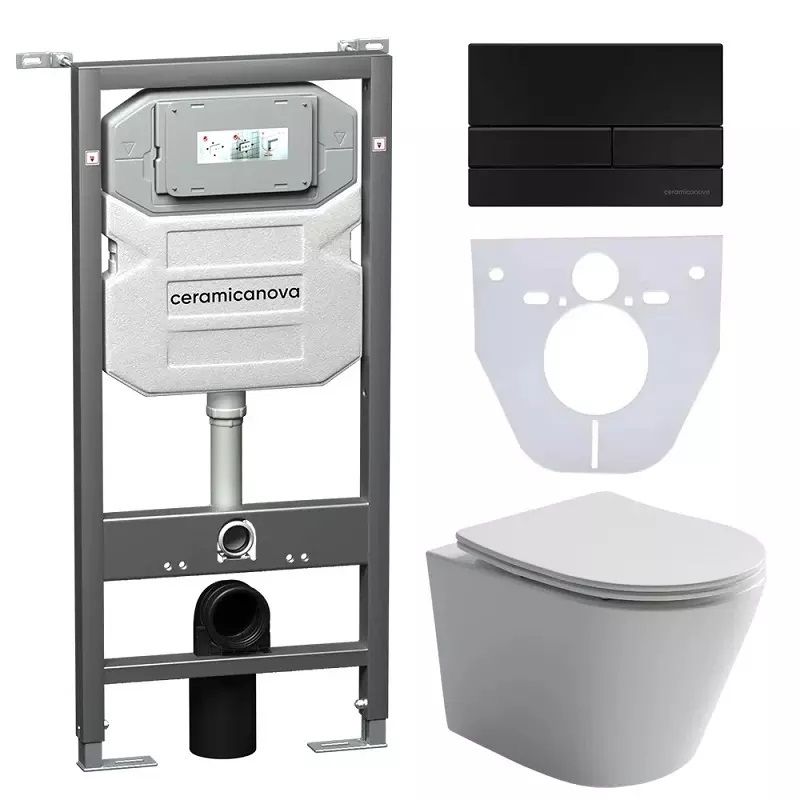 Комплект с инсталляцией Ceramica Nova CN6000_1002B_1000 унитаз Balearica CN6000 крышка-сиденье с микролифтом и инсталляция Envision CN1002B с чёрной матовой кнопкой смыва Flat купить