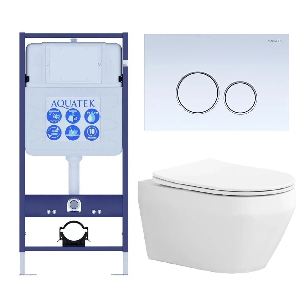 Комплект SET AQUATEK ЛЕЯ cm-015 4в1 унитаз с инсталляцией кнопкой и сиденьем микролифт купить