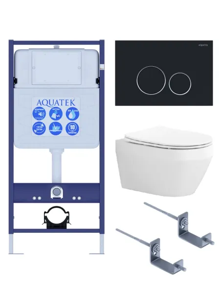 Комплект SET AQUATEK ЛЕЯ Т-0-20 4в1 унитаз с инсталляцией кнопкой и сиденьем микролифт купить