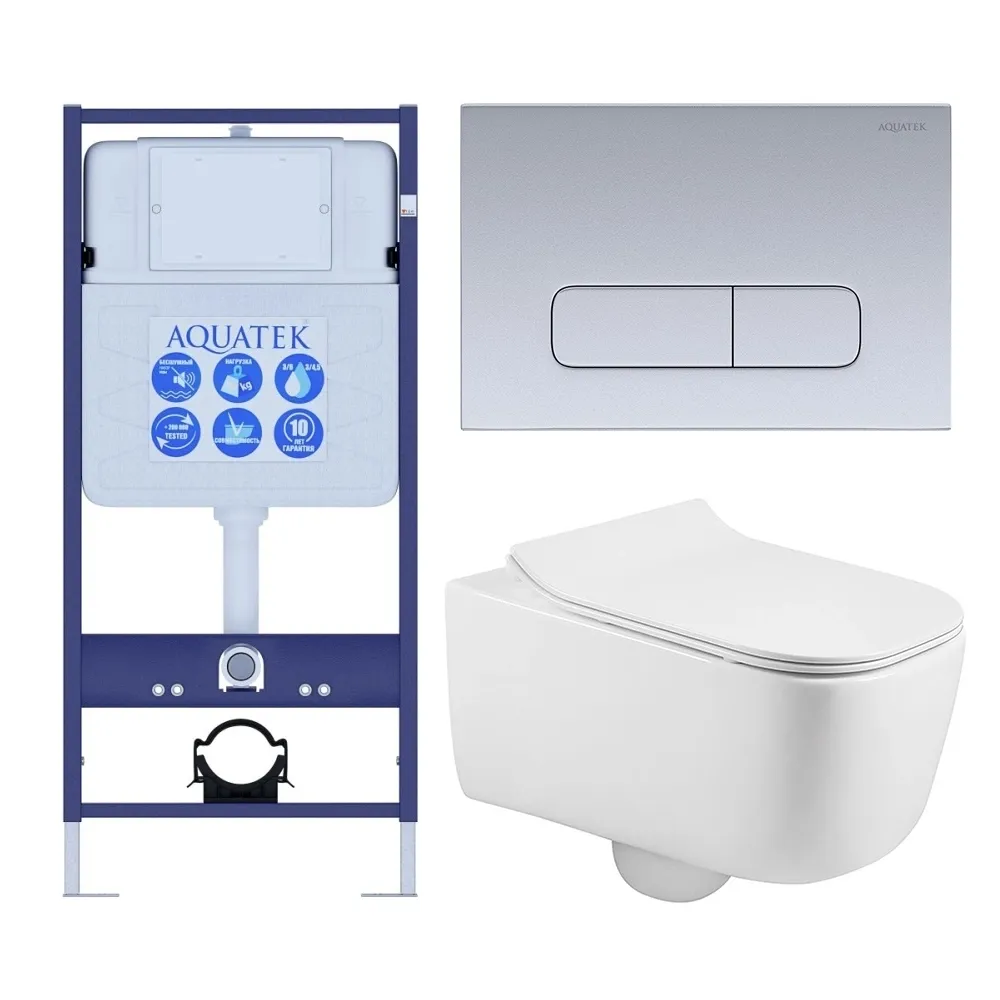 Комплект SET AQUATEK ЛУГАНО-014 4в1 унитаз с инсталляцией кнопкой и сиденьем микролифт