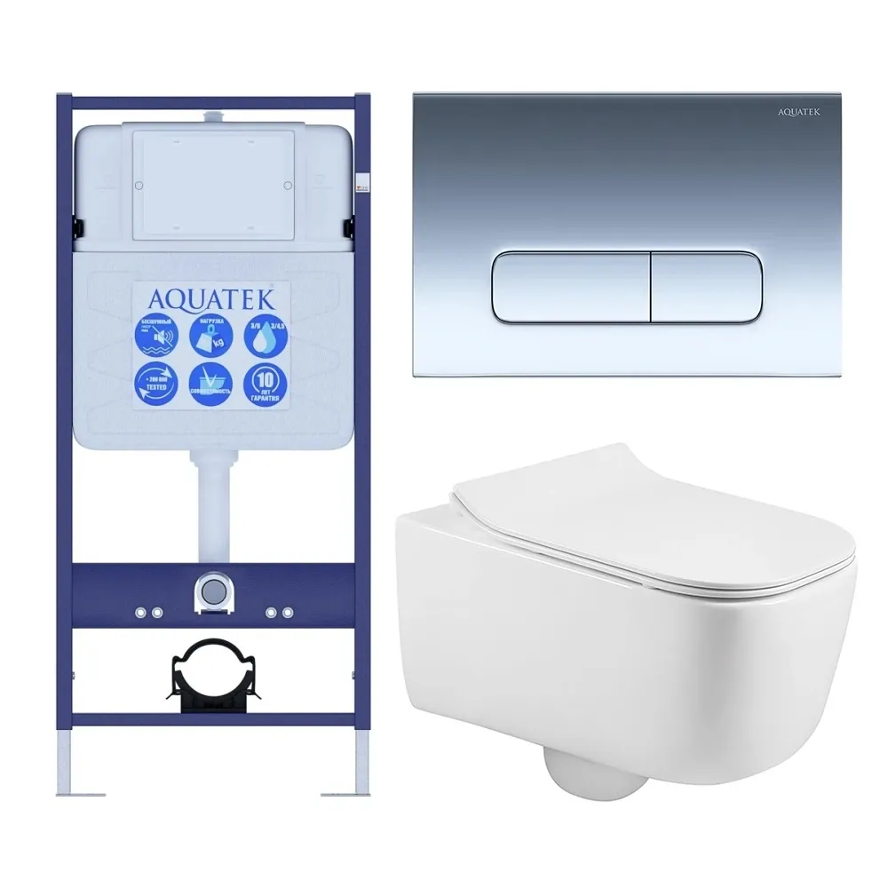 Комплект SET AQUATEK ЛУГАНО-016 4в1 унитаз с инсталляцией кнопкой и сиденьем микролифт купить