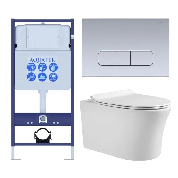 Комплект SET AQUATEK НИКА-014 4в1 унитаз с инсталляцией кнопкой и сиденьем микролифт купить