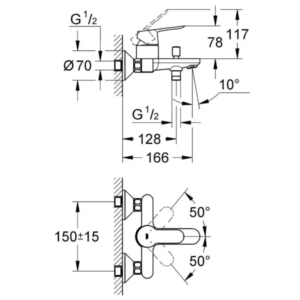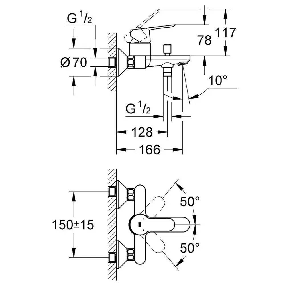 Смеситель для ванны GROHE Start Edge внешнего монтажа, хром (23348000)