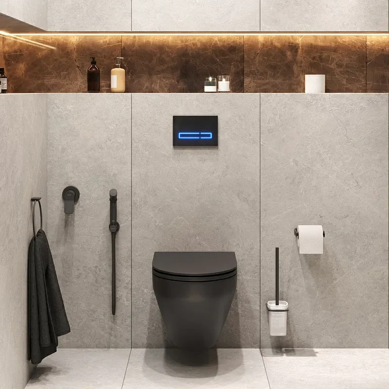 Комплект унитаза с инсталляцией AM.PM Spirit CK70GH Черный матовый с сиденьем Микролифт с Черной глянцевой клавишей смыва с гигиеническим душем и аксессуарами для ванной комнаты
