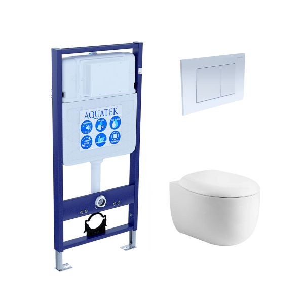 Комплект унитаза с инсталляцией Aquatek Set Aquatek Альтаир cm-009 4в1 с сиденьем Микролифт и Белой клавишей смыва купить