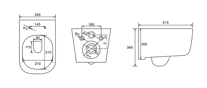 • Совместима со всеми видами подвесных унитазов