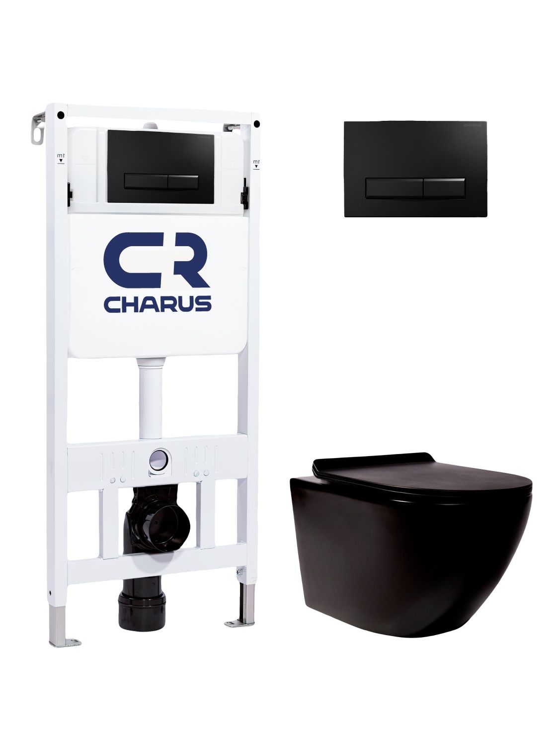 Комплект унитаза с инсталляцией CHARUS SET.121BT.DW.5 клавишей смыва черная