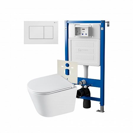Комплект унитаза с инсталляцией Point Элемент PN48301W с сиденьем МикролифтСет: Система инсталляции Point Элемент для подвесного унитаза PN45120 + Клавиша смыва для инсталляции Point Ника, белая, PN44081W + Унитаз подвесной Point Венера безободковый, белый, сиденье дюропласт микролифт быстросъемное PN41071