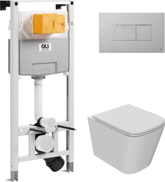 Инсталляция для унитаза. Рама инсталляции изготовлена из стали и покрыта прочной порошковой антикоррозионной краской. Отличительная особенность данной системы инсталляции - возможность регулировки по высоте на 20 см с помощью ножек из оцинкованной стали. Бачок скрытого монтажа выполнен из полимерного материала HDPE, что соответствует ведущим Европейским стандартам. Для защиты от конденсата, а также обеспечения бесшумной работы, резервуар скрытого монтажа обшит пенопластом.