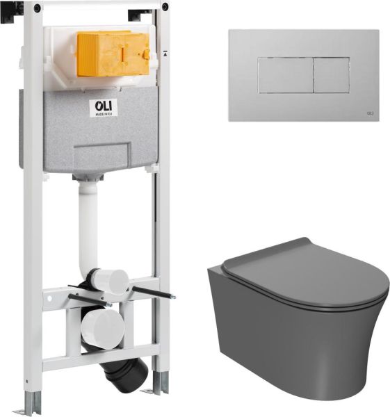 Инсталляция для унитаза. Рама инсталляции изготовлена из стали и покрыта прочной порошковой антикоррозионной краской. Отличительная особенность данной системы инсталляции - возможность регулировки по высоте на 20 см с помощью ножек из оцинкованной стали. Бачок скрытого монтажа выполнен из полимерного материала HDPE, что соответствует ведущим Европейским стандартам. Для защиты от конденсата, а также обеспечения бесшумной работы, резервуар скрытого монтажа обшит пенопластом.